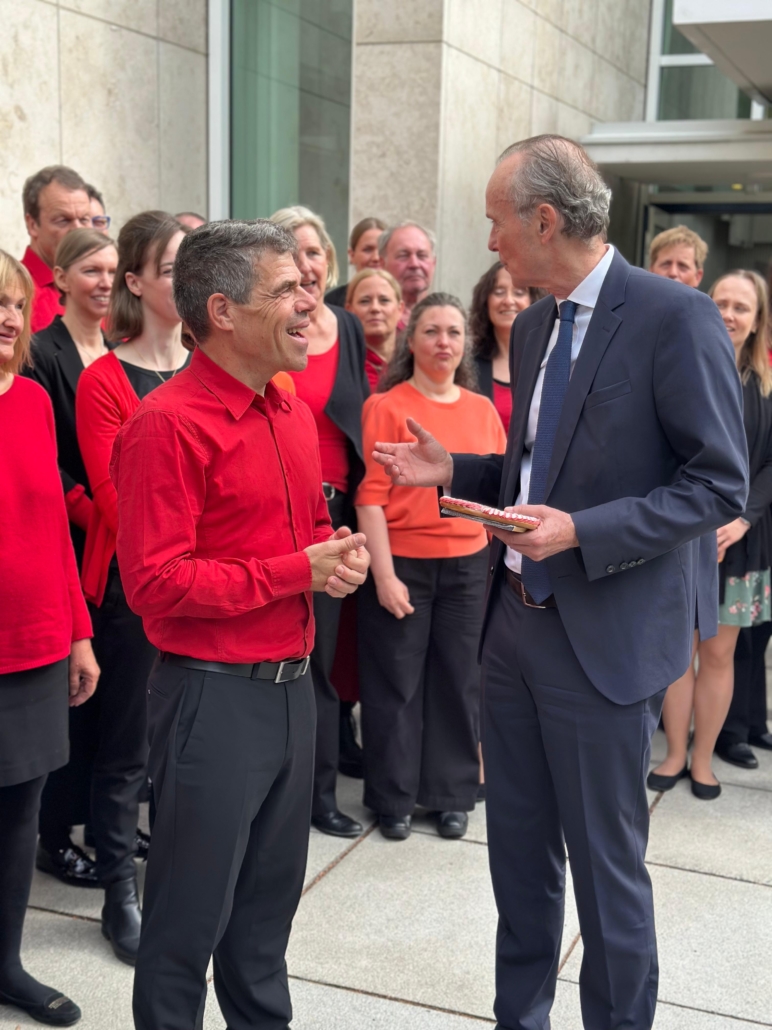 Bevor wir Helsinki verließen, hatten wir die Ehre, die Deutsche Botschaft zu besuchen. In einem kurzweiligen Vortrag erfuhren wir viel über die finnische Kultur, Mentalität und Wirtschaft – spannend, persönlich und horizonterweiternd. Besonders bewegend: das Treffen mit dem deutschen Botschafter und unser musikalischer Dank im idyllischen Botschaftsgarten, wo wir zwei Songs erklingen ließen – ein Moment der Verbundenheit zwischen Ländern, Menschen und Herzen.