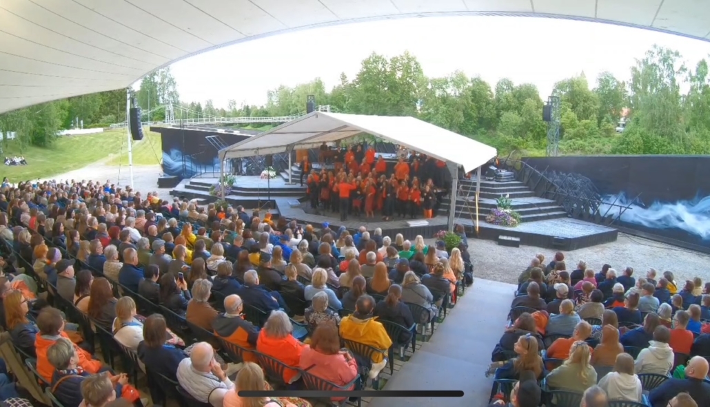 Dann wartete bereits das nächste Highlight auf uns: In der Opera Arena in Ilmajoki sangen wir ein Konzert, das wir niemals vergessen werden. Gemeinsam mit dem Pop up Gospel Choir und der gefeierten finnischen Sängerin Ilta standen wir auf der Bühne – vor 1.300 Zuhörerinnen und Zuhörern in einer atemberaubenden Kulisse. Die Energie, die Harmonie, die Emotion – es war schlicht überwältigend. Noch einmal ein riesiges Kiitos! an unsere finnischen Freunde für ihre Herzlichkeit, Offenheit und musikalische Kraft!