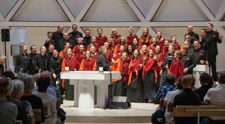 Mit einer musikalischen Umarmung endete am Sonntagabend in Holzkirchen ein besonderes Konzert. Der Gospelchor St. Lukas und Ostbahngroove waren gemeinsam angetreten, um unter der stimmungsvollen Kuppel von St. Josef mehr als 400 Musikbegeisterten ein mitreißendes Chor-Konzert zu geben. Es endete mit Standing Ovations.